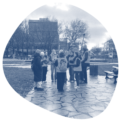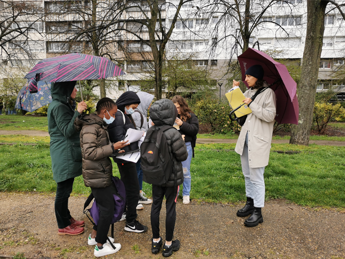 Marches exploratoires multi-publics, permanences dans l’espace public et ateliers de co-programmation.